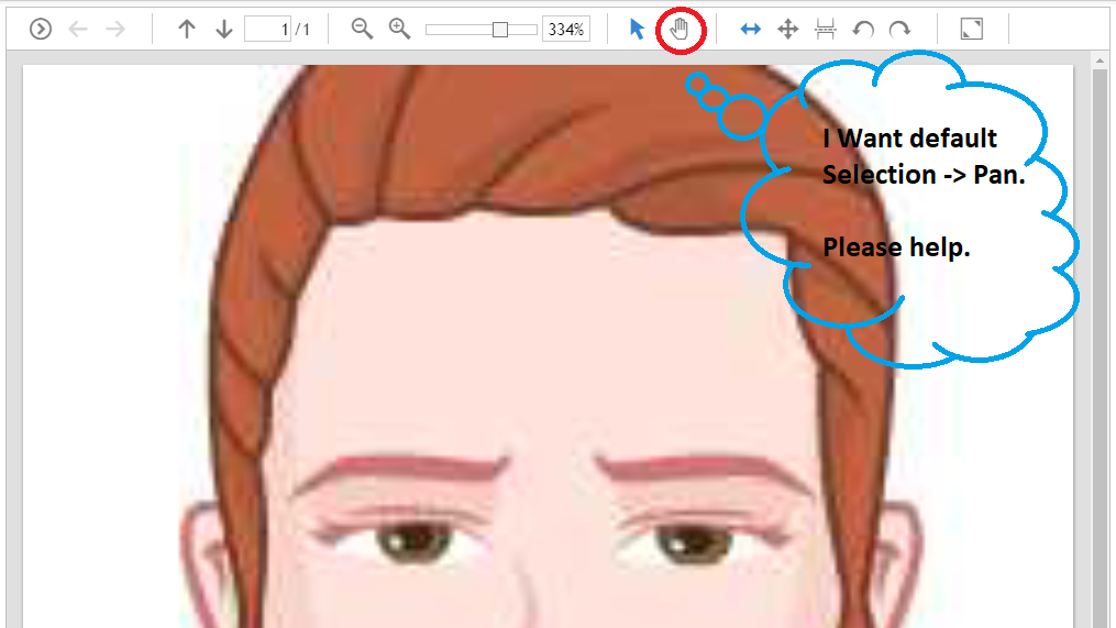 <GleamTech:DocumentViewerControl ID="documentViewer" runat="server" Width="800" Height="600" Resizable="True"> <ClientEvents Loaded="documentViewerLoaded" /> </GleamTech:DocumentViewerControl> <script type="text/javascript"> function documentViewerLoaded(sender, e) { var documentViewer = sender; documentViewer.setToolMode("Pan"); } </script>