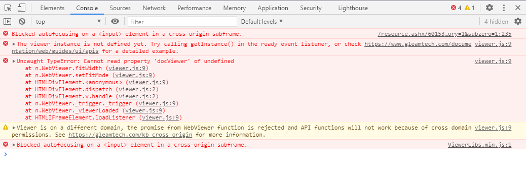 Open Network tab in your browser console and examine where request for /resource.ashx/605466187810000000/webviewer/Reader.html is being redirected (you can search for reader.html), for example if it's redirected to myDomain.com/resource.ashx/605466187810000000/webviewer/Reader.html then of course it will not work because it becomes cross domain (because your main page is still e.g. for localhost domain).