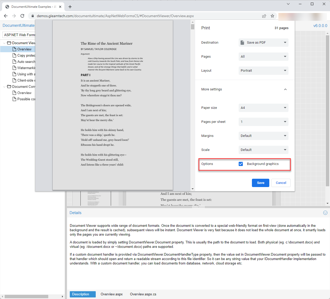 Fixed: First page gray issue if "Background graphics" option is selected on Chrome's print preview dialog.