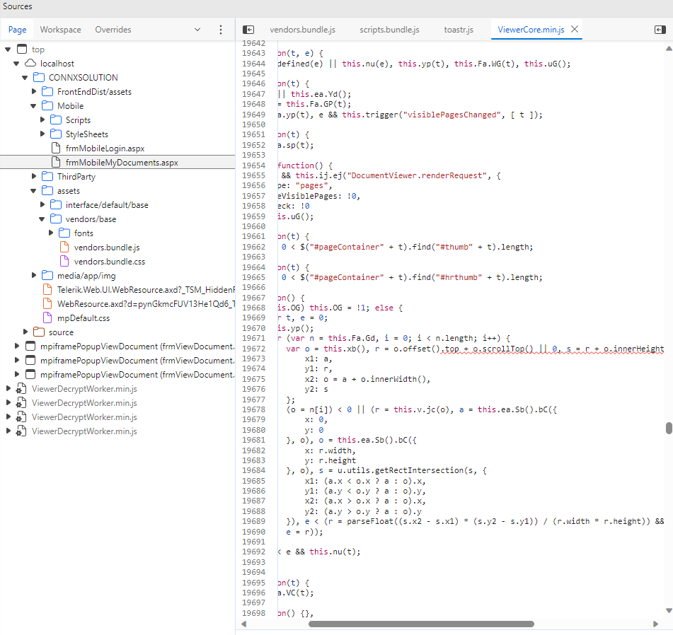 For troubleshooting, we've checked the browser's developer tools, emulated mobile views, and attempted JavaScript debugging. We've also verified browser compatibility and looked for updates in the GleamTech.DocumentUltimate library. Our project has a responsive design, but the issue persists on mobile.