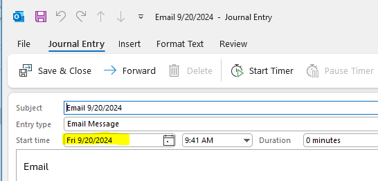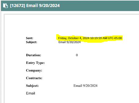This date is constantly changing to the current date. If I render this file again tomorrow, that Sent date will be 10/5/2024. This tells me that the client GleamTech Document Ultimate code is doing this.  The source .MSG file is on our file store. Again, this happens only for Journal entries that we have saved as .MSG file.